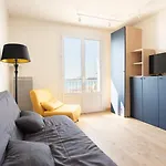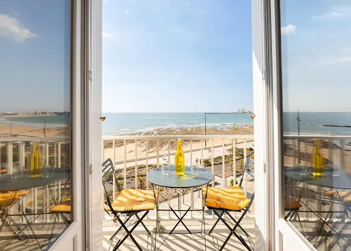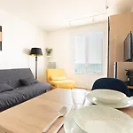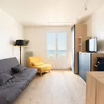 Appartement Davy Et Yo - Vue Mer Les Sables-dʼOlonne van 33 m², gesitueerd op minder dan 750 meter afstand van het Musée du Blockhaus Hôpital en Eglise Saint-Pierre, biedt uitzicht op de zee. Het appartement biedt actieve gasten de mogelijkheid om te genieten van een golfclub en een golfbaan.